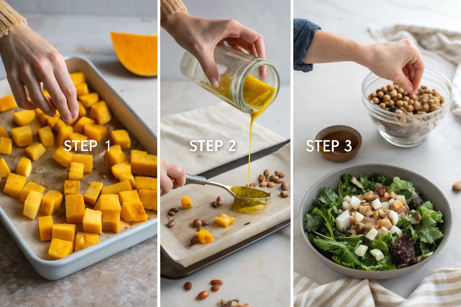 - Preheat oven to 425°F (220°C). Peel, seed, and cube the butternut squash. Toss with olive oil, salt, pepper, and optional smoked paprika or cinnamon. Roast 22–28 minutes and let cool slightly.